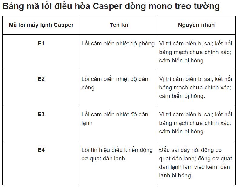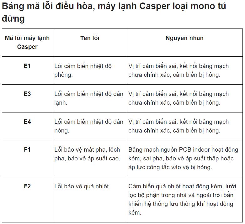 SuaChuaChinhHang gửi quý khách hàng các lỗi thông dụng và các khắc phục của máy lạnh ( điều hòa ) CASPER để quý khách chủ động xử lý nhanh