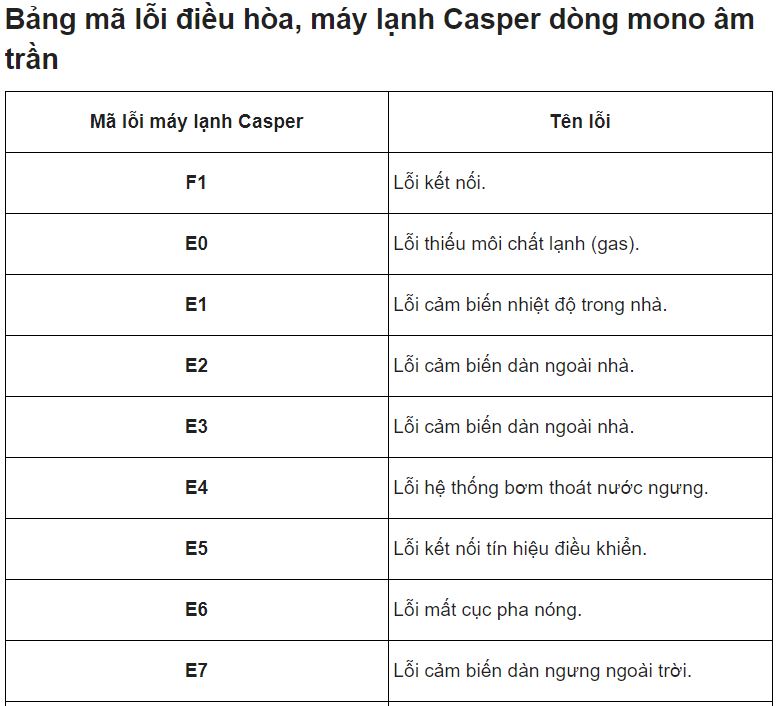 SuaChuaChinhHang gửi quý khách hàng các lỗi thông dụng và các khắc phục của máy lạnh ( điều hòa ) CASPER để quý khách chủ động xử lý nhanh