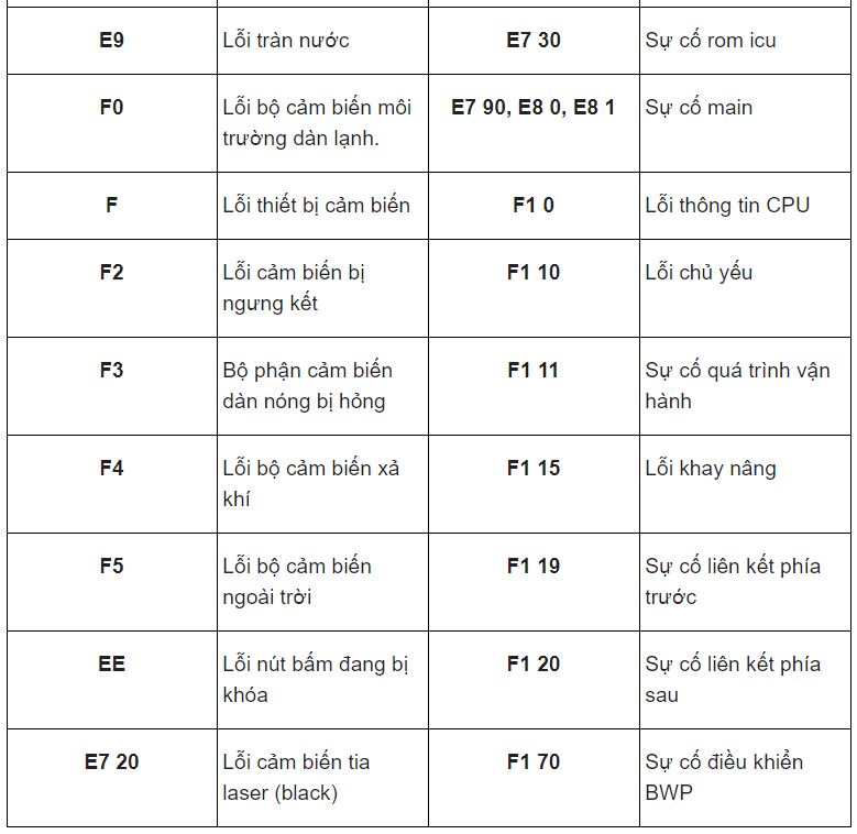 Khi gặp lỗi, màn hình LED của máy lạnh Sharp sẽ hiển thị mã lỗi. Bạn chỉ việc tra mã đó trên bảng mã lỗi máy lạnh ( điều hòa ) Sharp dưới đây và tìm ra các giải quyết phù hợp: